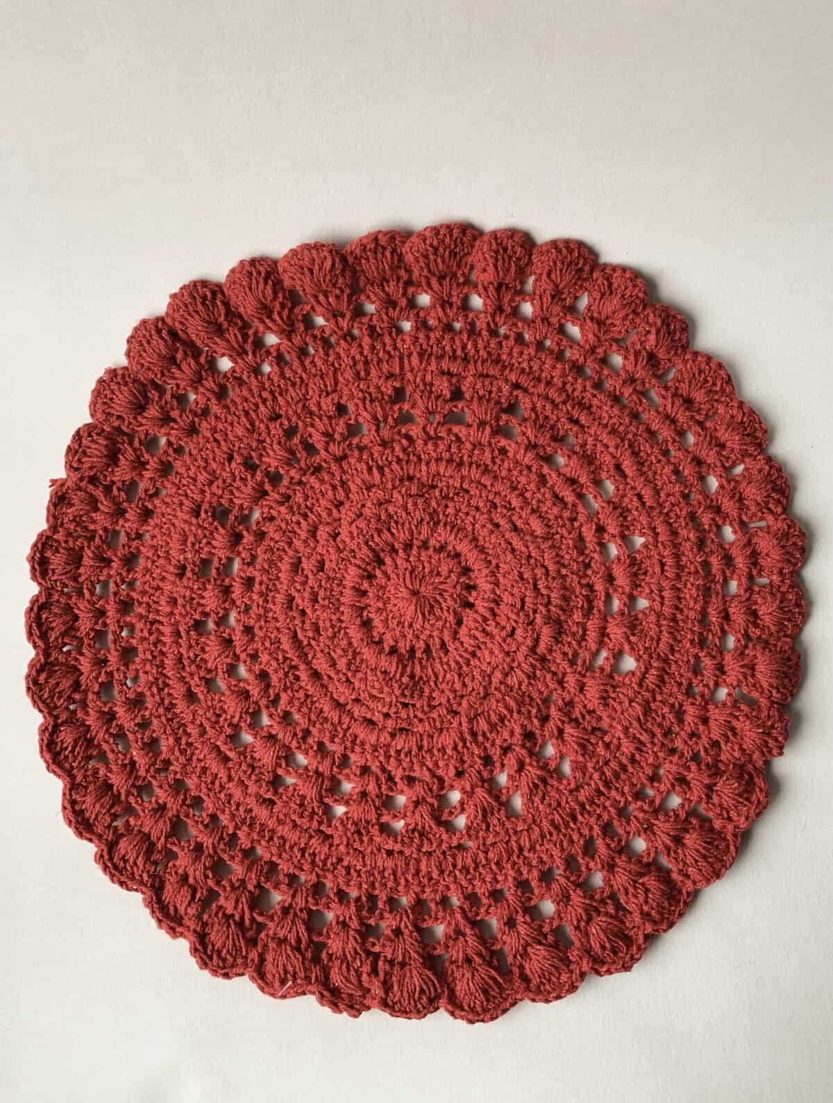Bordbrikke heklet rund d 35 cm rød