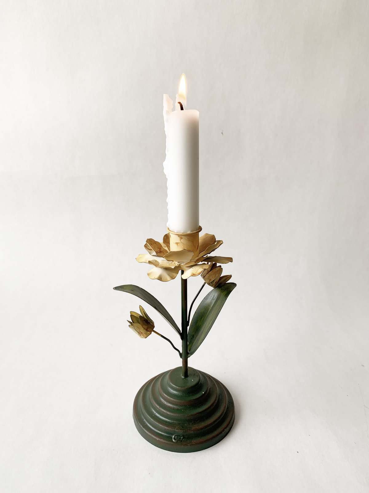 Lysestake metall rose h 17 cm gul