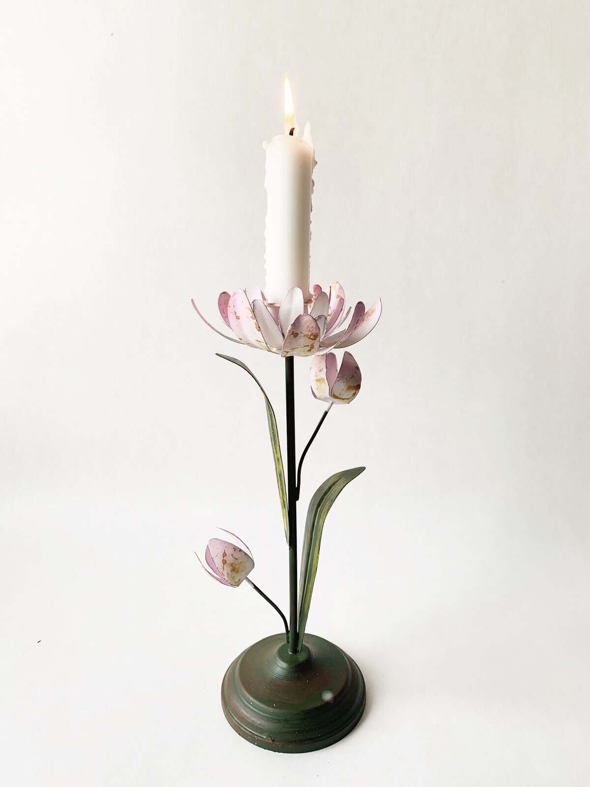Lysestake metall tulipan h 26 cm rosa