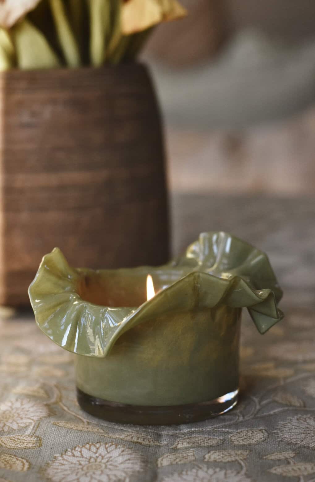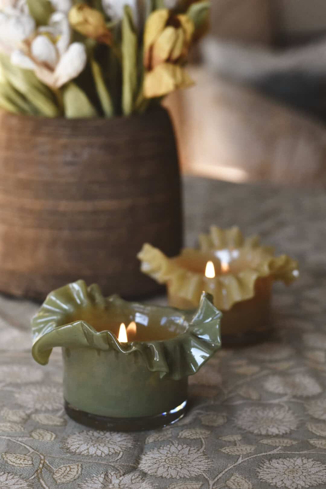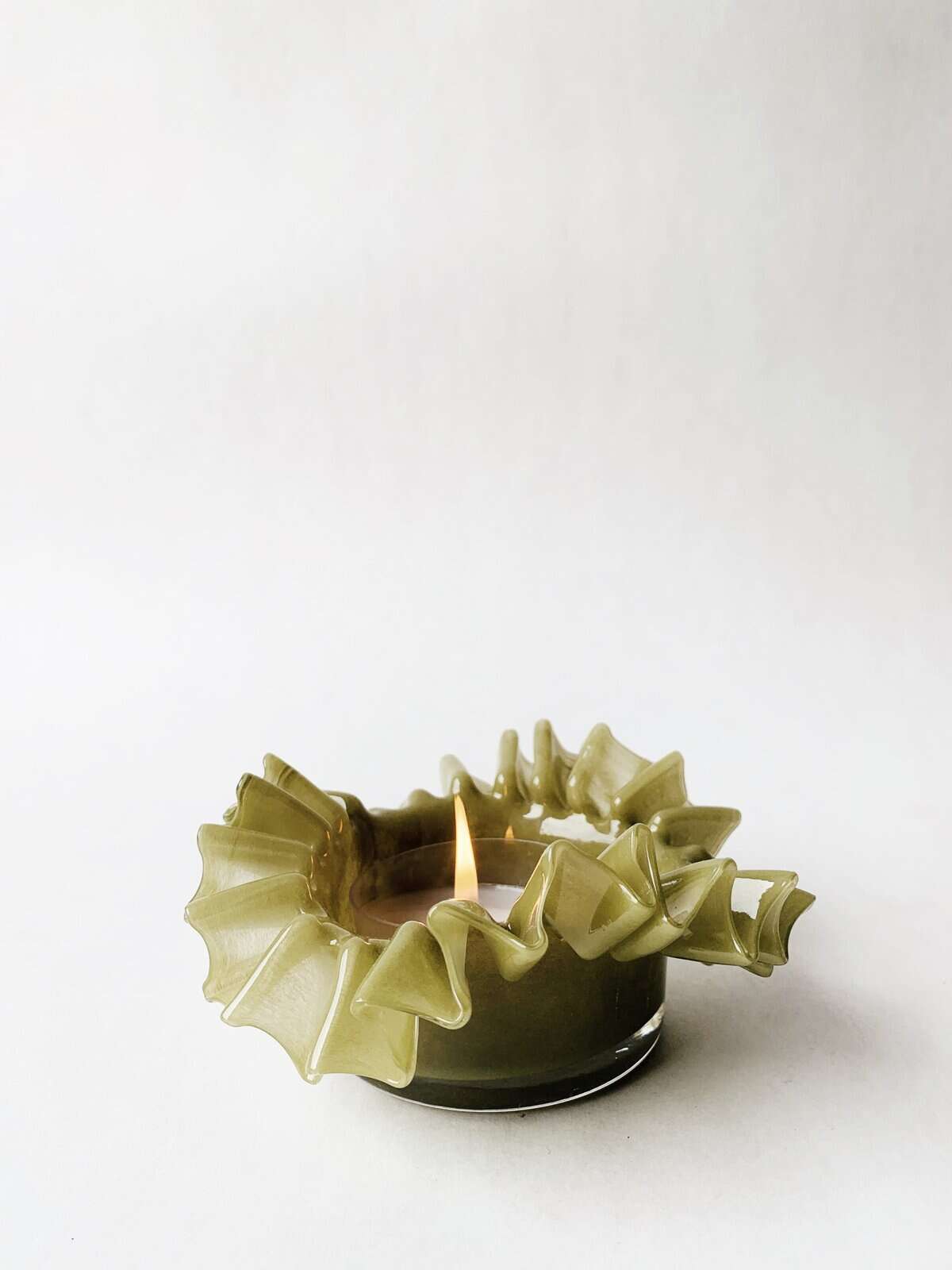 Lysglass bølger 13×8 cm grønn