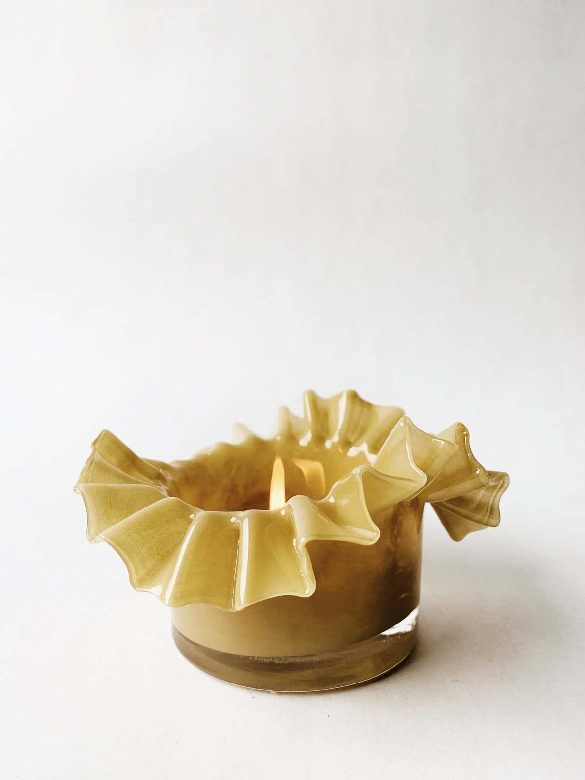 Lysglass bølger 13×8 cm gul