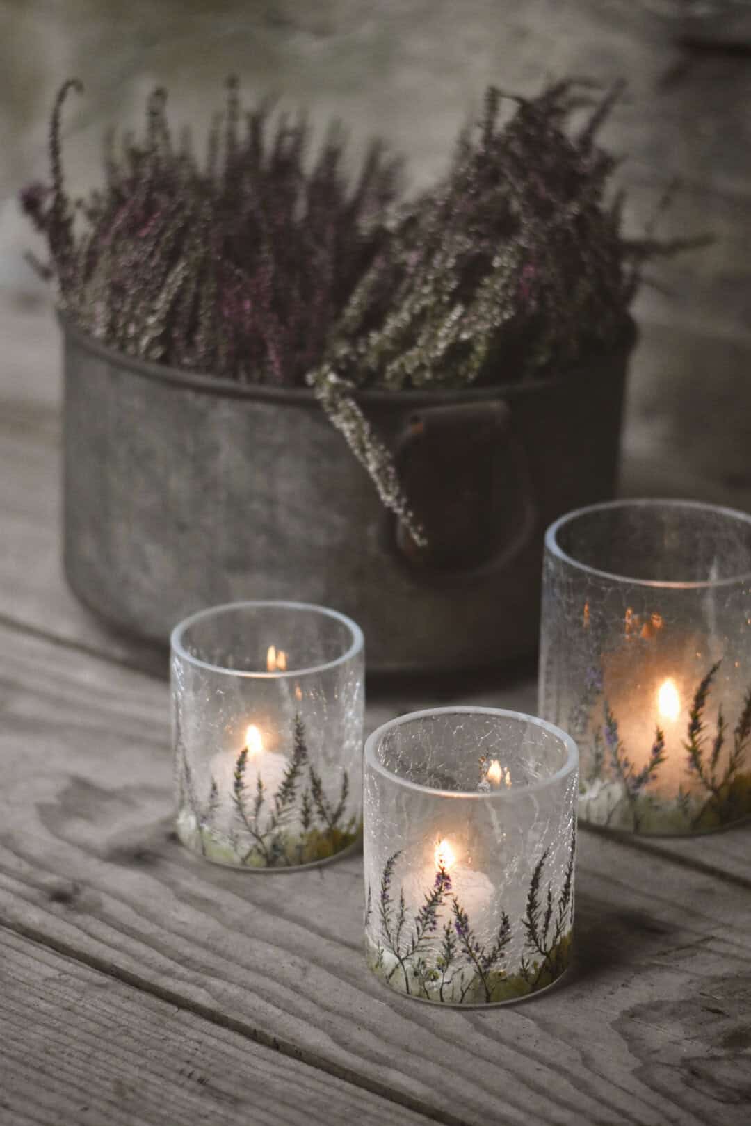 Lysglass krakelert frostet lyng 11,5×13 cm