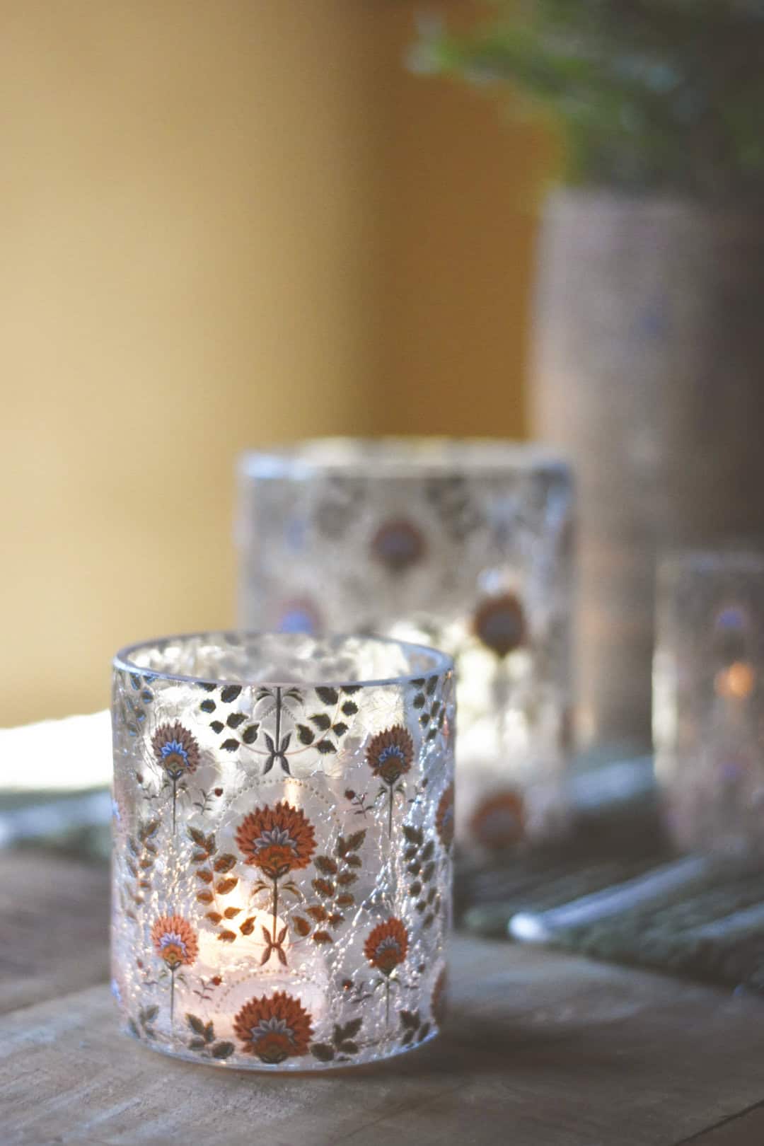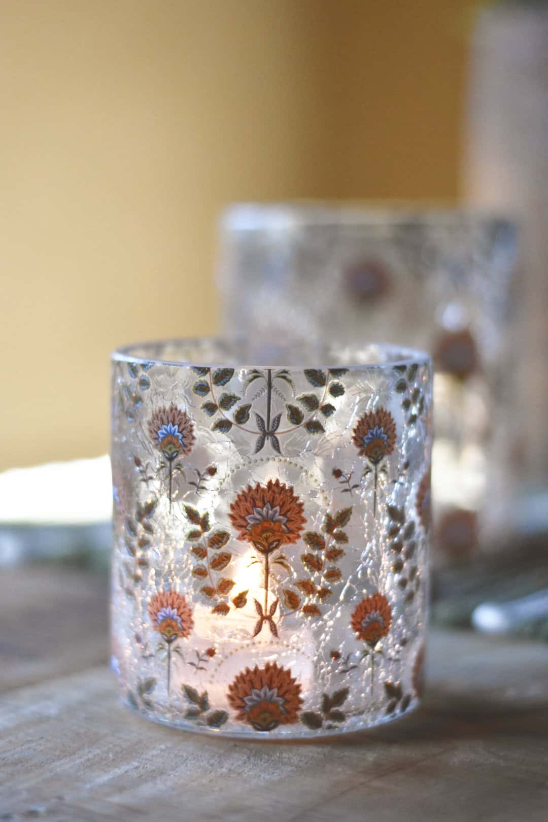 Lysglass krakelert mix grønn/rosa 9×10 cm