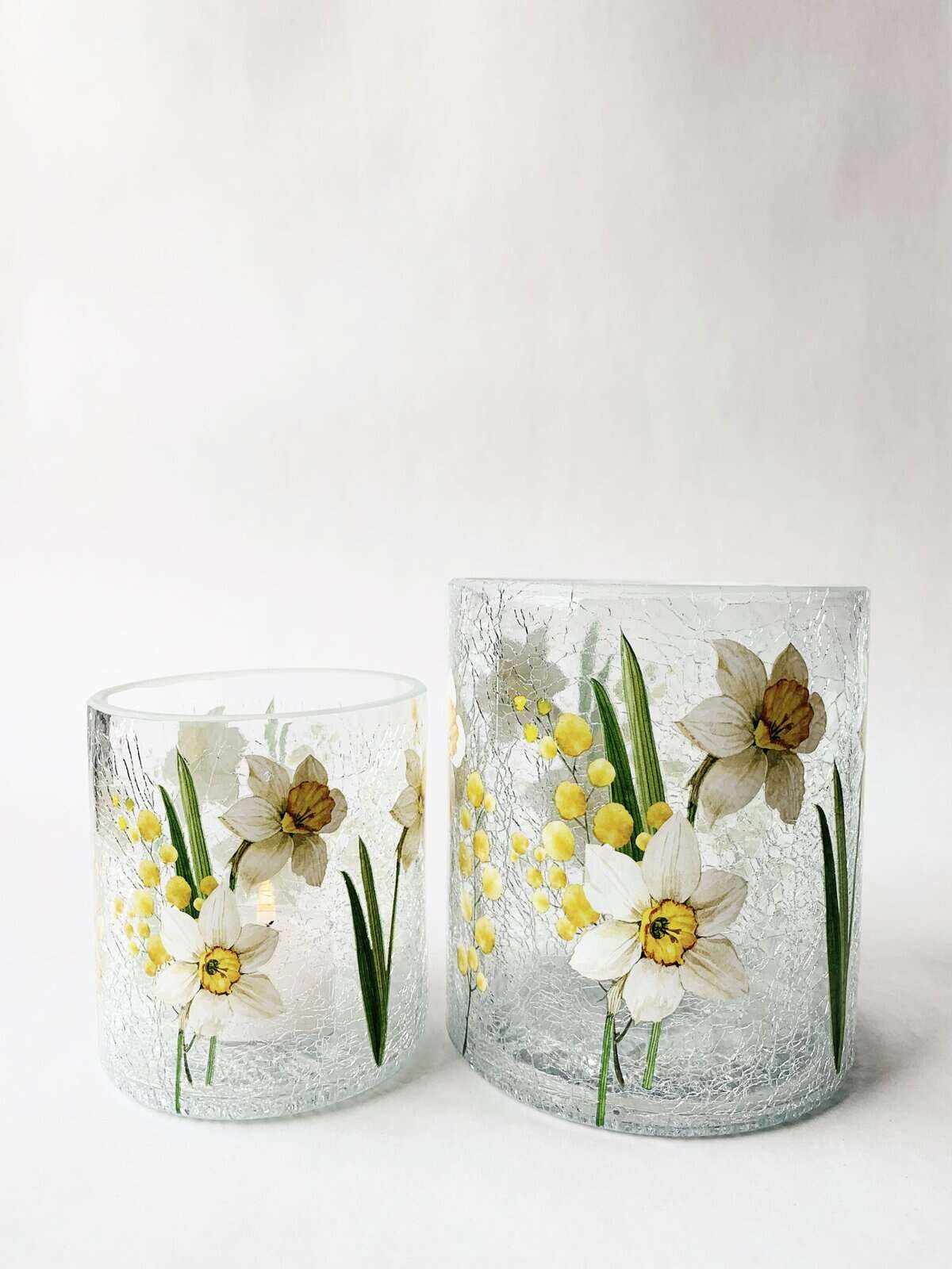Lysglass krakelert påskeliljer 9×10 cm