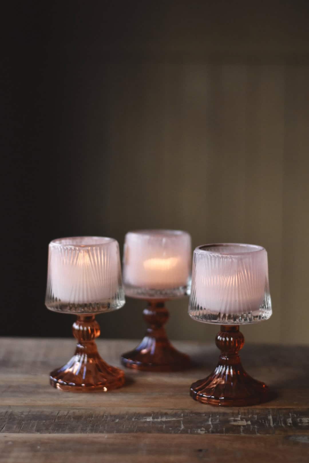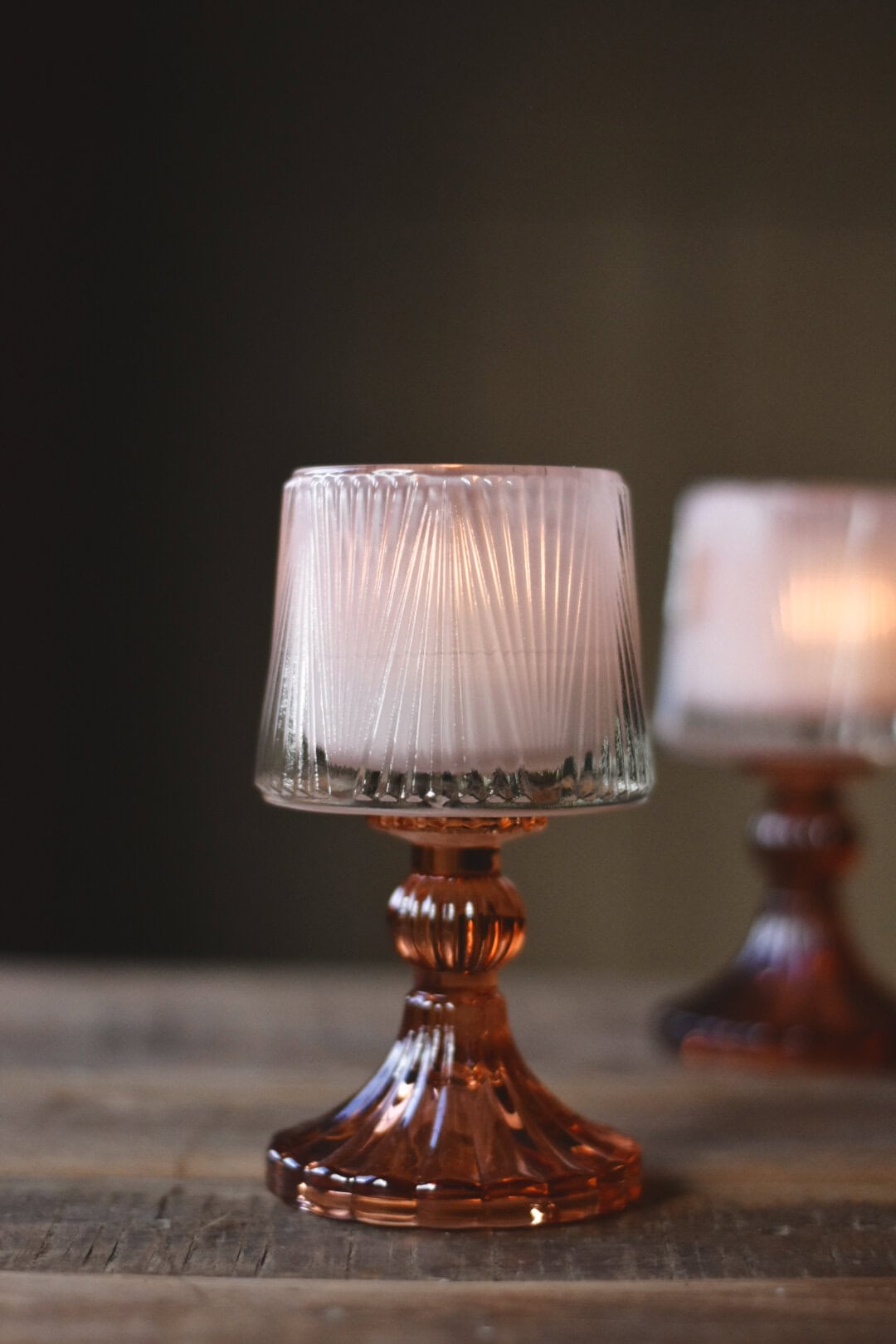 Lysholder på stett h 15 cm oransje/rosa