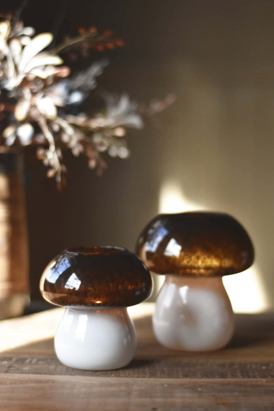 Lysholder sopp h 10 cm brun