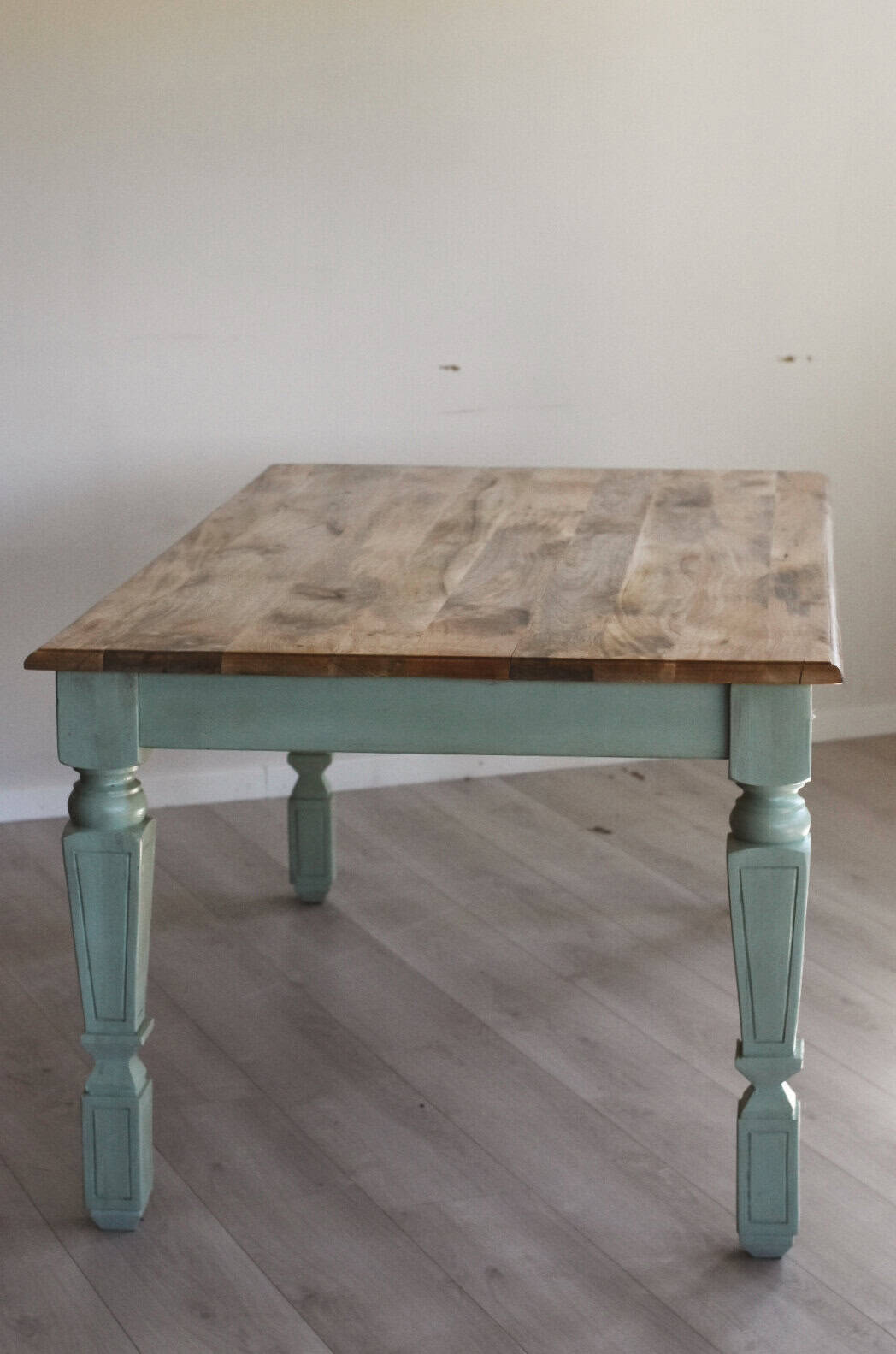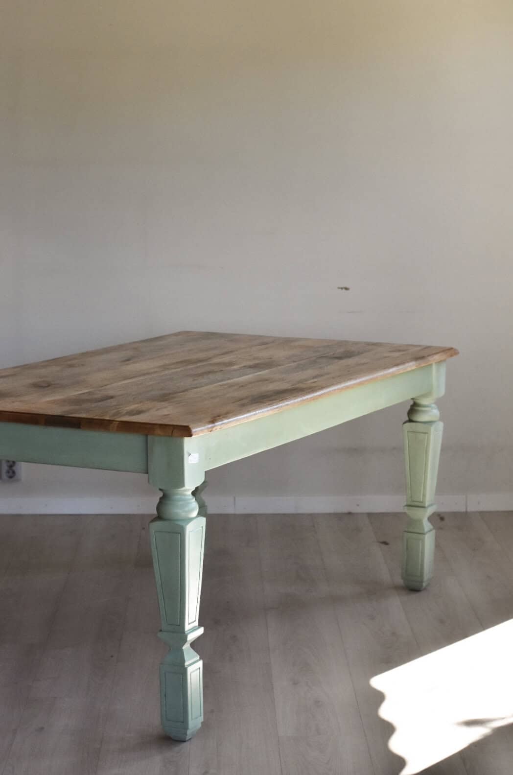 Spisebord i mangotre 180x100x78cm, m grønne ben