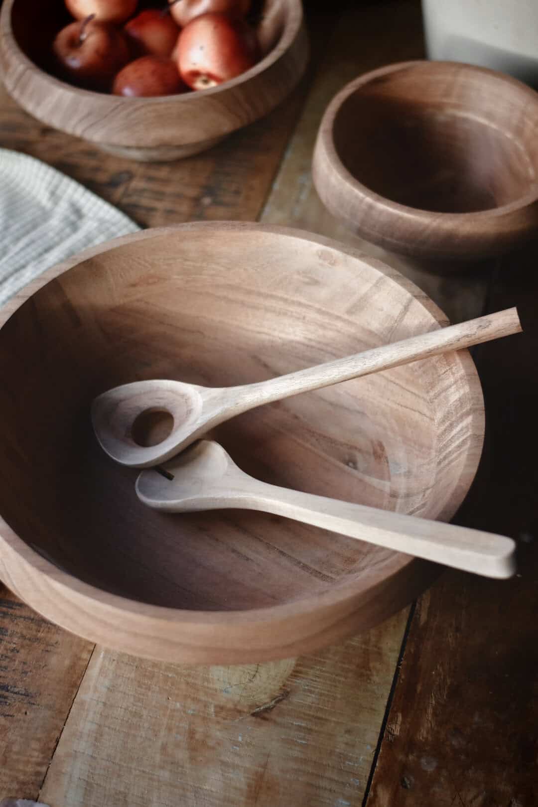 Alle våre treprodukter er laget av akasietre, en tresort som er naturlig antiseptisk. Det er ikke brukt noen kjemikalier i produksjonen; alt er 100% naturlig. Treverket er heller ikke behandlet, så vi anbefaler å bruke mat/ kjøkkenolje for å forlenge varigheten til produktene. Sett produktet inn i matolje, la det trekke inn i et par timer og tørk av den overskytende oljen.