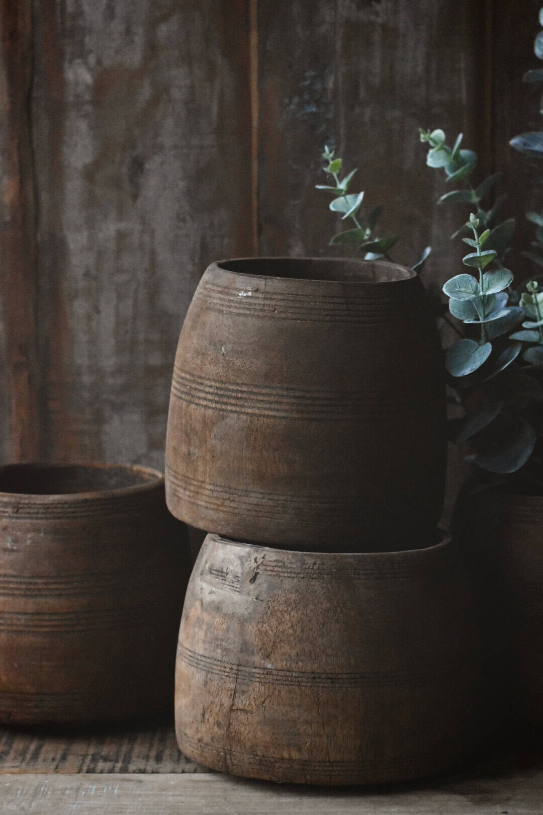 Vintage trepotte ca. d:24 x h:16/22cm (varierende størrelser)
