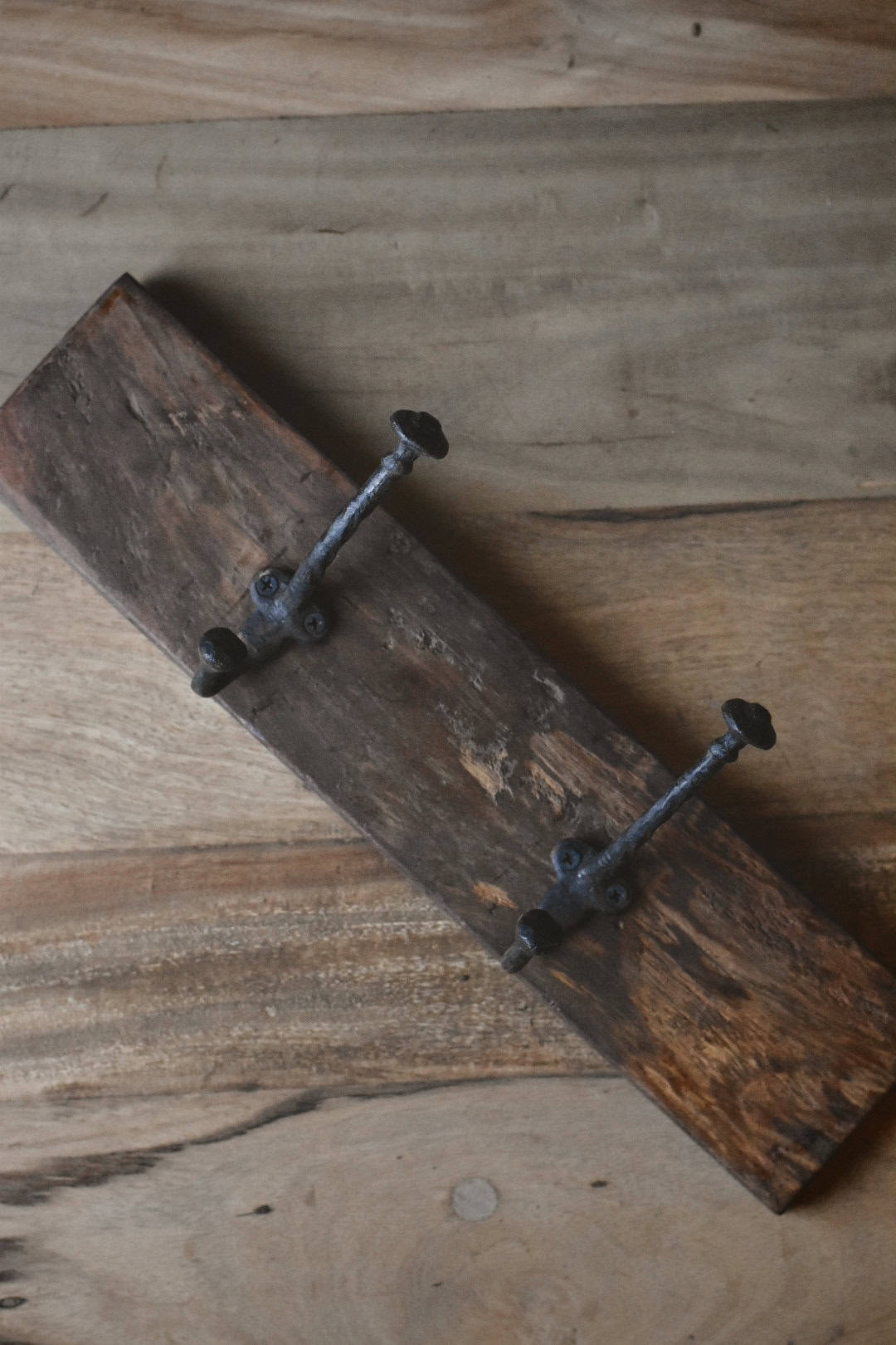 Vintage veggheng m 2 kroker tre/metall 39x10cm