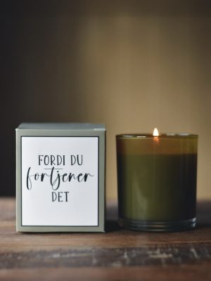 Duftlys i gaveeske 8x9cm «fordi du fortjener det»